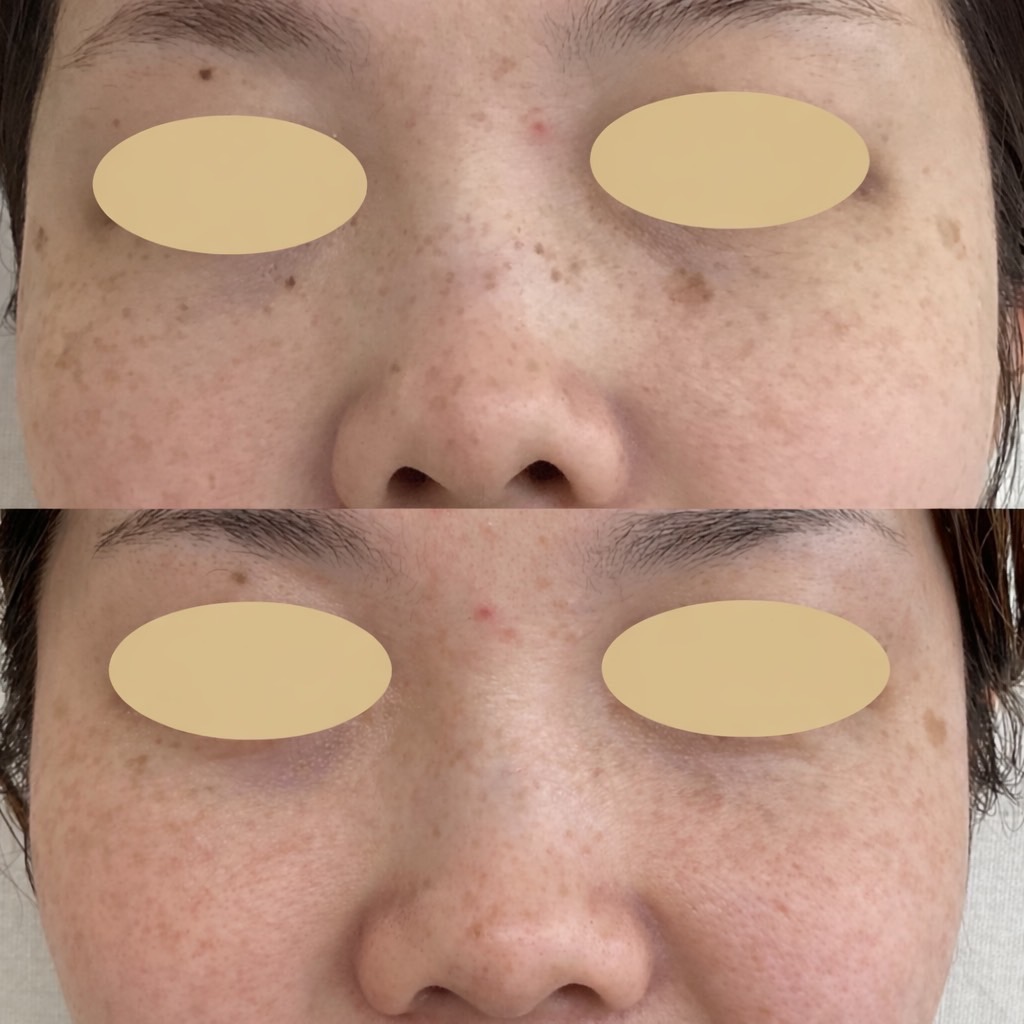 その結果、全体的に色ムラが整い、シミ・そばかすが少しずつ薄くなってきたと感じています。
