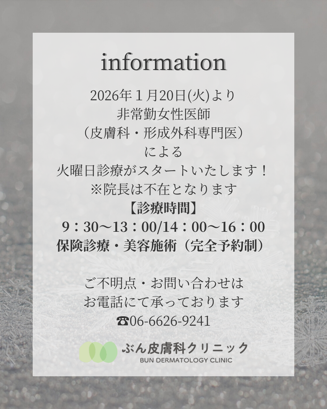 いつも ぶん皮膚科クリニック にご来院いただき誠にありがとうございます。
