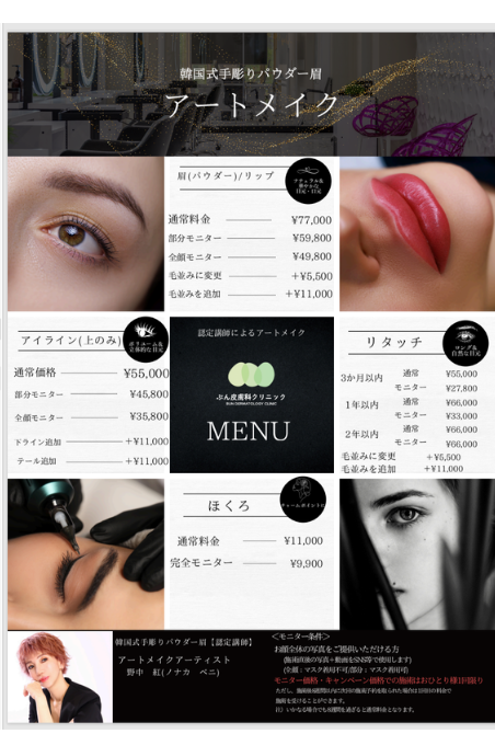 施術は、国内外の大会にも出場し、韓国式手彫りパウダー眉の【認定講師】としても活躍されている野中 紅(ノナカ ベニ)さんが担当いたします。